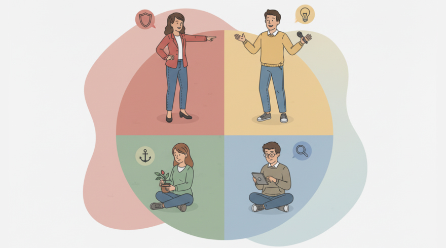 DISC summarizes behavior across four dimensions: Dominance, Influence, Steadiness, and Conscientiousness. Dominance reflects how directly you pursue results; Influence shows how you connect and persuade; Steadiness tracks your pace and patience; Conscientiousness signals your preference for accuracy and structure. The model is descriptive rather than judgmental, which means there are no “good” or “bad” profiles, only different strengths that shine in different contexts.